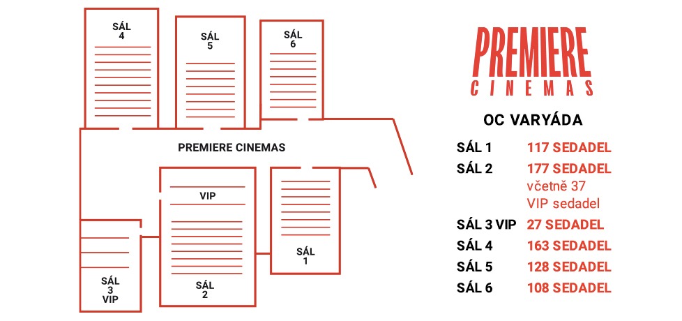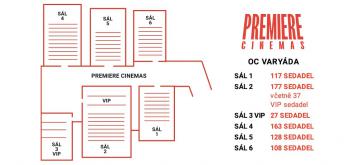 Multikino Premiere Cinemas se nachází v obchodním centru Varyáda Karlovy Vary. Prostory šesti kinosálů jsou vhodné pro firemní akce, konference, prezentace, školení nebo VIP promítání pro zákazníky a zaměstnance. Do všech kinosálů se vstupuje z jednoho prostorného foyer. Součástí největšího sálu je exkluzivní zóna Premiere VIP s 37 luxusními polohovatelnými křesly. Najdete zde také další samostatný menší prémiový kinosál Premiere VIP a VIP salonek. Celková kapacita multikina je 720 míst.