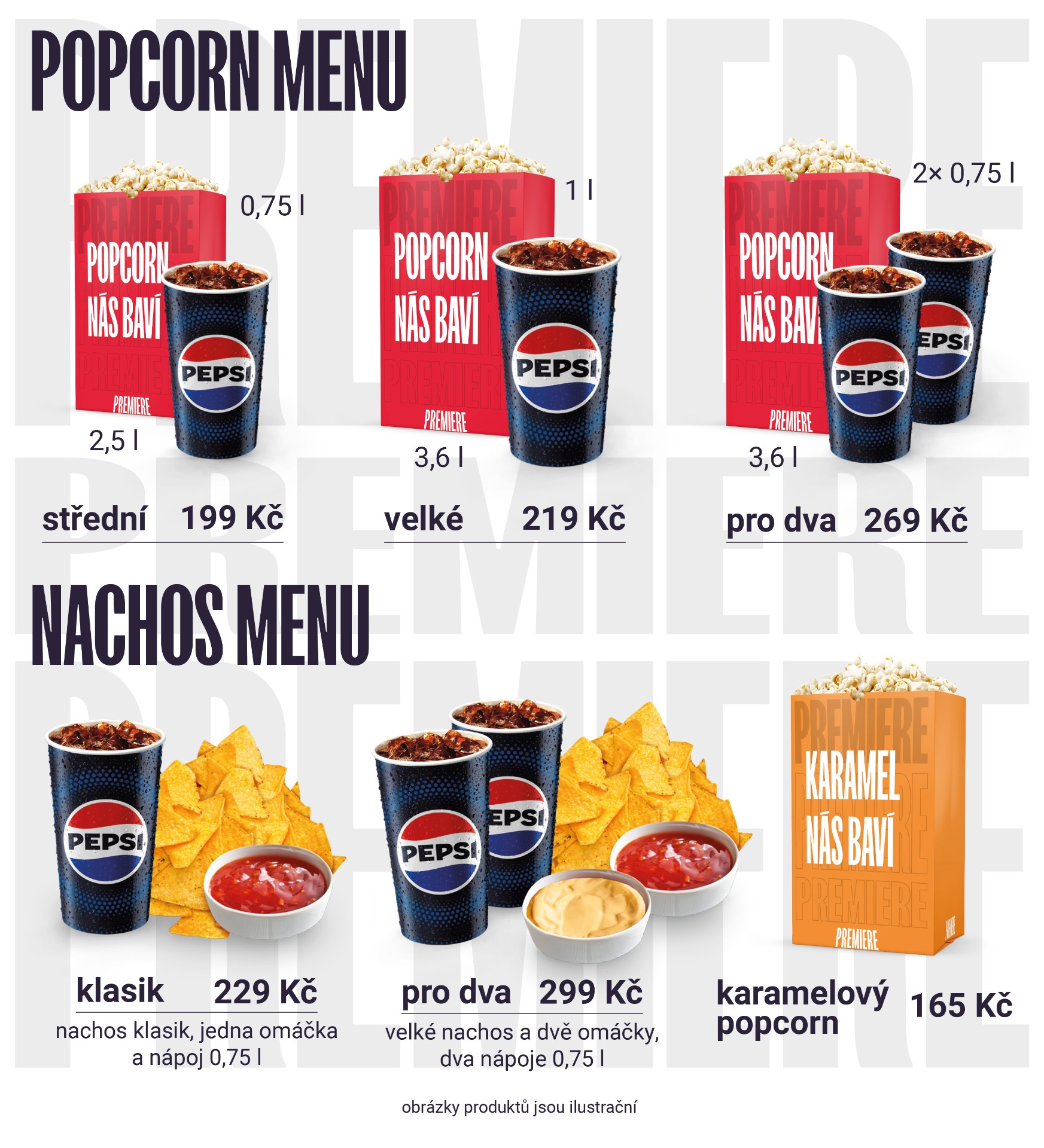 Ke kinu patří pořádná porce čerstvého popcornu, lahodných nachos a osvěžujícího nápoje. Stavte se před návštěvou filmu v našem občerstvení pro své oblíbené menu a váš filmový zážitek bude ještě dokonalejší. Sledujte také nabídku speciálních filmových menu s postavičkami.